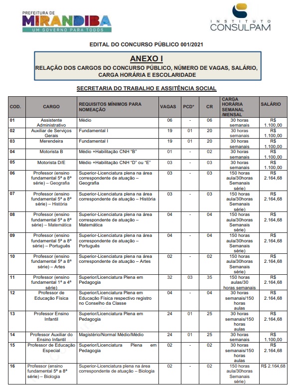 beneficiados com salário mensal que alterna de R$ 1.100,00 e R$ 2.164,68. Para