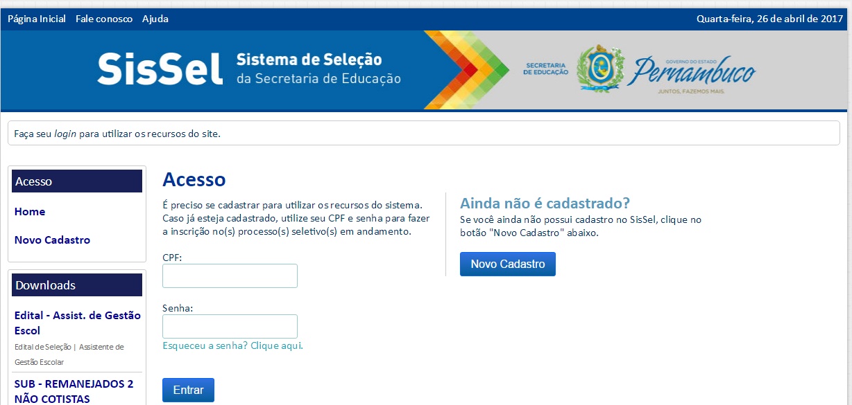 até o dia 2 de maio, pelo site da SEE: www.educacao.pe.gov.br.