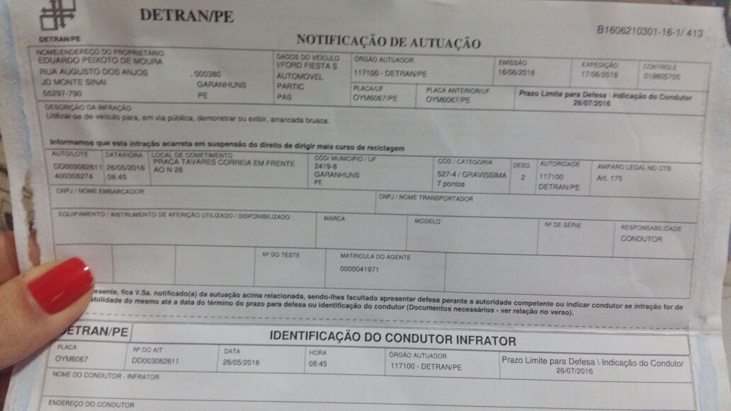 Carteira Nacional de Habilitação (CNH) de Eduardo Peixoto, além de multa de RS