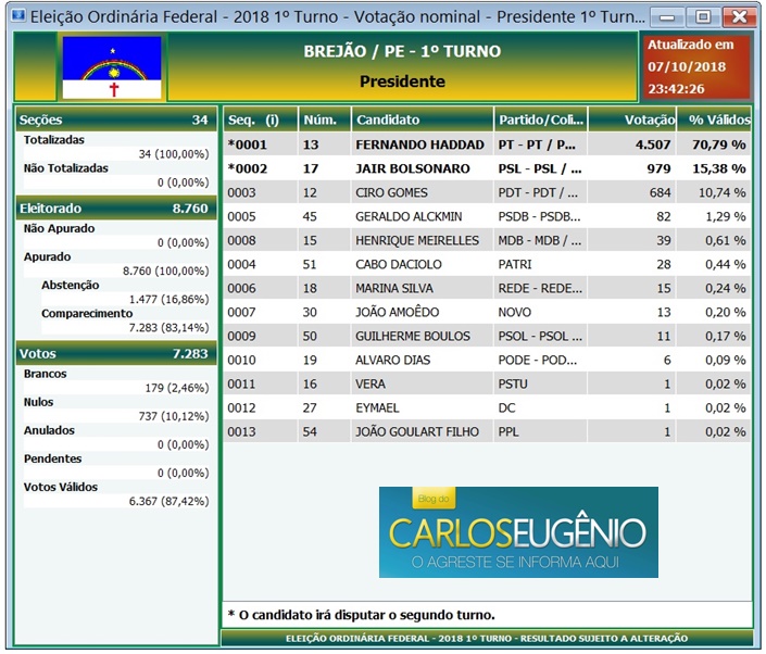 AGRESTE MERIDIONAL: Confira o Resultado das Eleições em Brejão