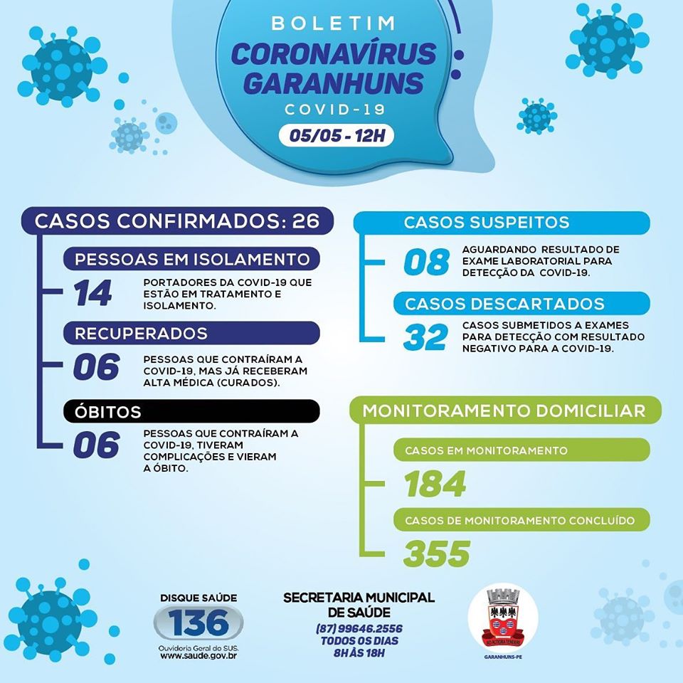 terça-feira, dia 5, mais dois casos de Coronavírus naquele Município. Segundo a