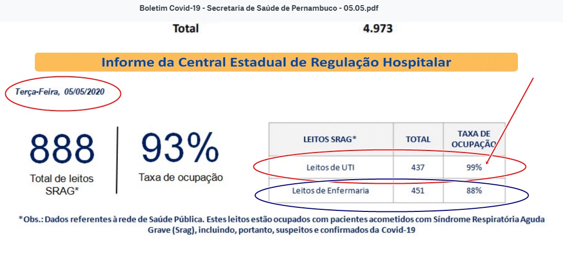 no início da noite de hoje, dia 5, 99% dos Leitos de UTI estão ocupados e