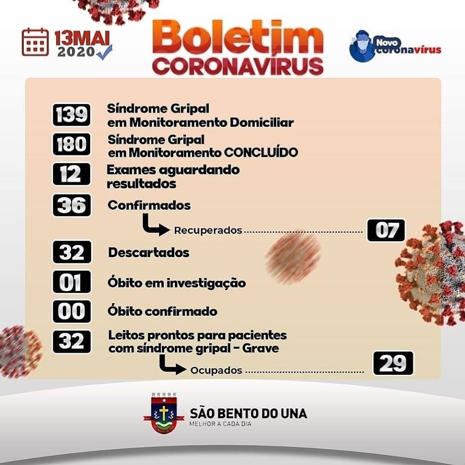 de Bom Conselho havia registrado três novos casos positivos. São Bento do Una também
