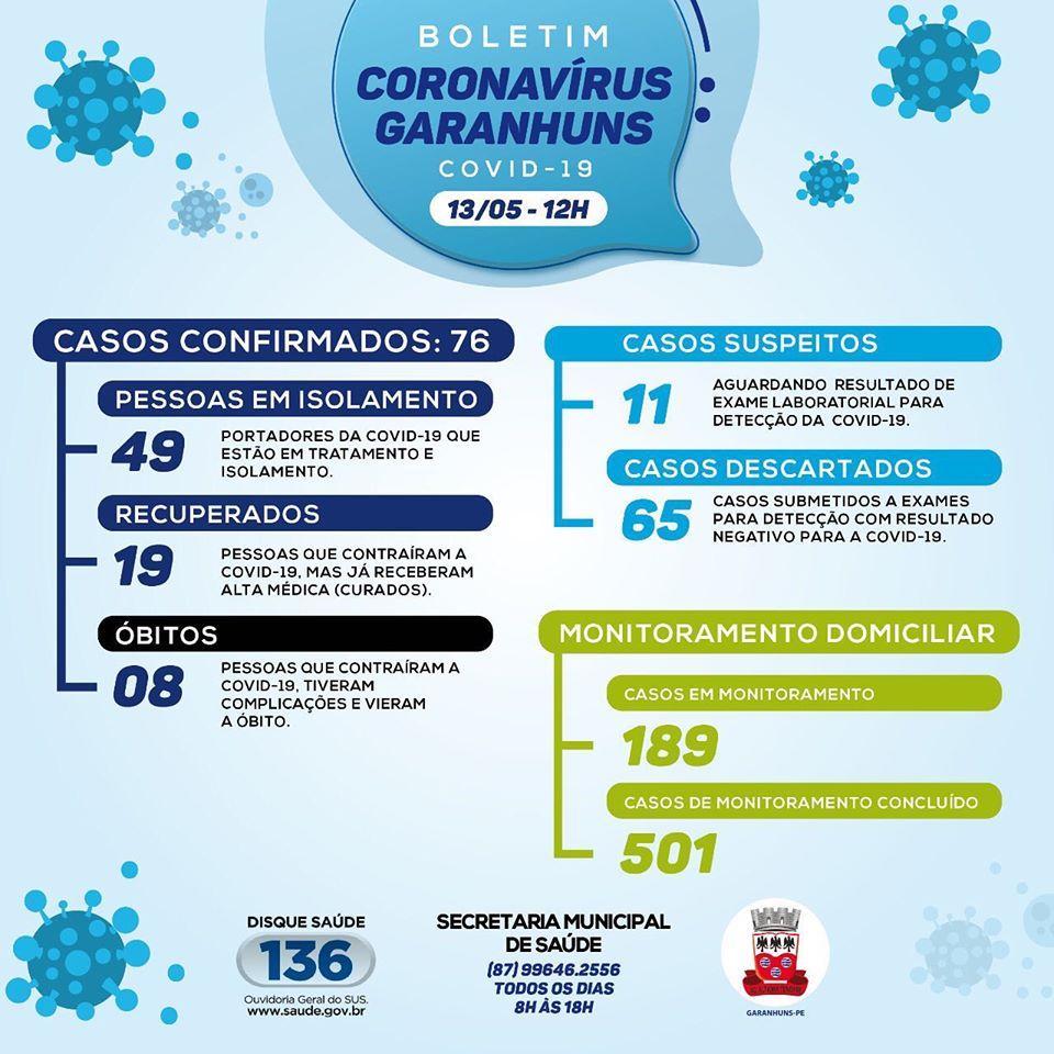 nesta quarta-feira, dia 13, seis novos casos de COVID-19, aqui em Garanhuns.