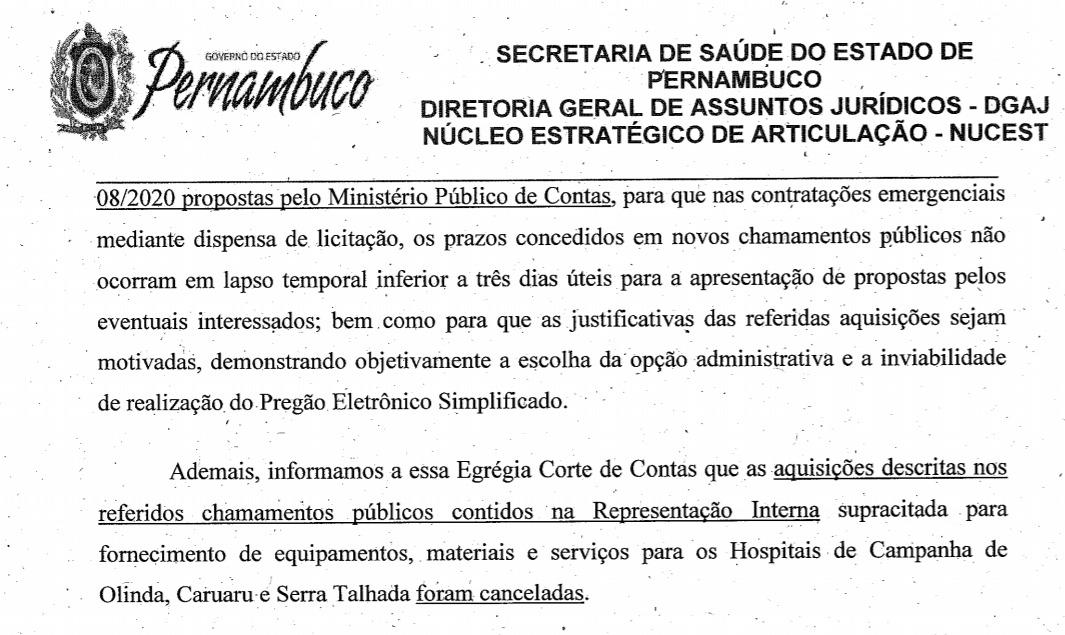 representação feita pelo Ministério Público de Contas de Pernambuco (MPCO).