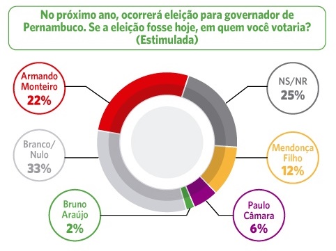 estimulada, o senador Armando Monteiro (PTB) aparece com 22% das intenções de