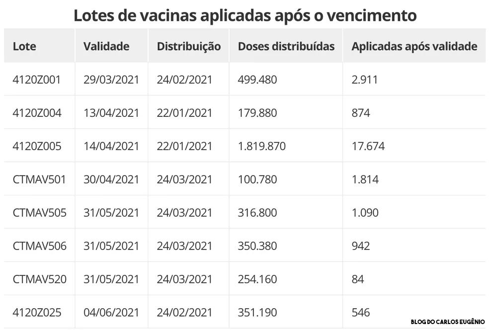 que não foram aplicadas vacinas contra a Covid-19 fora do prazo de validade no