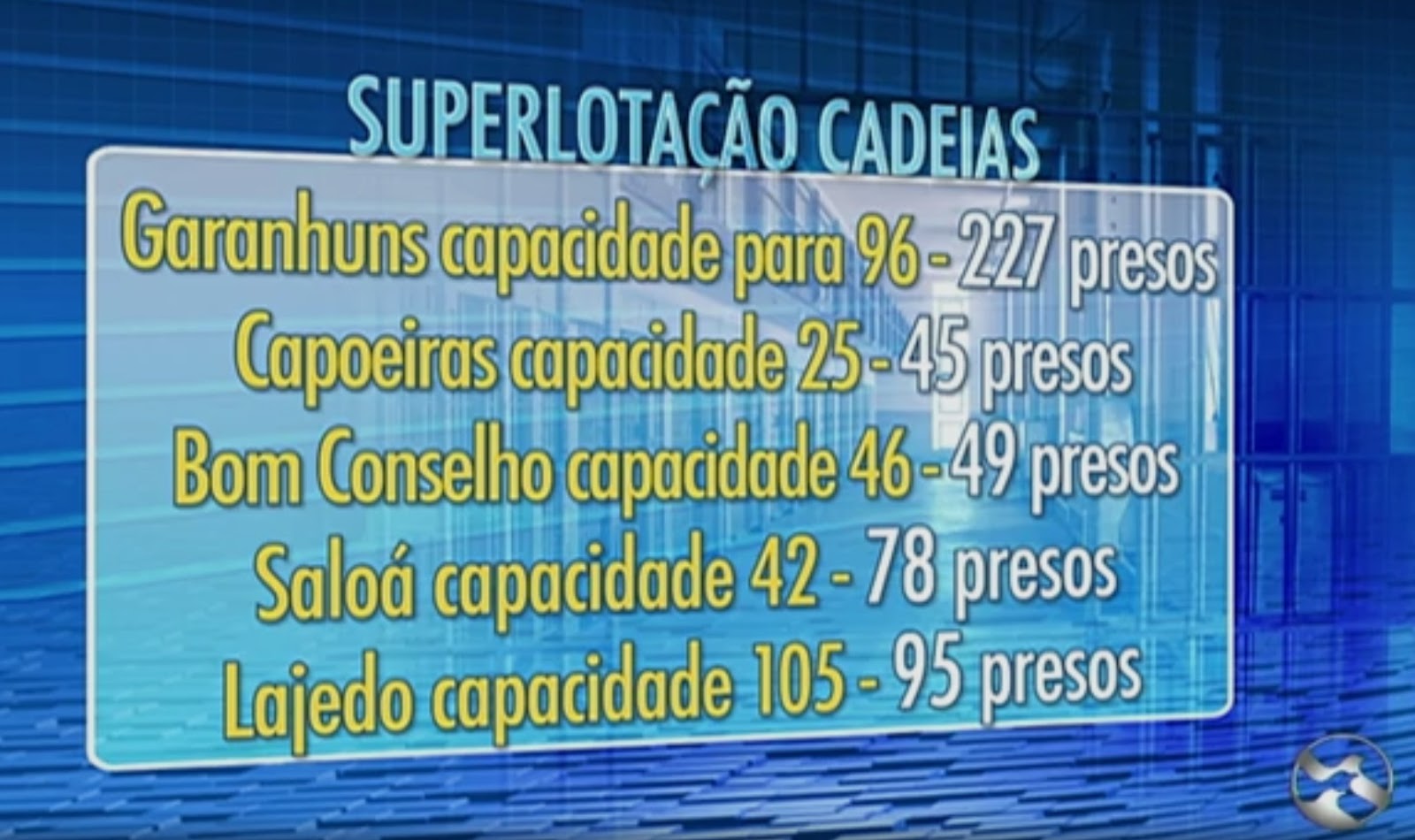 A cadeia de Garanhuns – antes do incêndio – também estava superlotada,