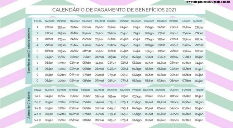 Pagamentos de Benefícios em 2021. As datas de pagamento das aposentadorias,