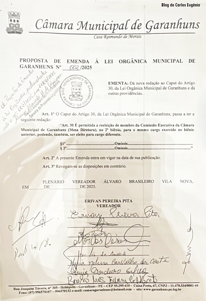 A votação da Proposta de Emenda à Lei Orgânica nº 002/2025, que abriria espaço para a reeleição dos membros da Mesa Diretora na mesma Legislatura, não ocorreu na sessão desta quarta-feira, dia 26, na Câmara de Garanhuns. A matéria, apresentada pelo vereador Erivan Pita (PSB), foi retirada de pauta após pedido de vistas da vereadora Nelma Carvalho.