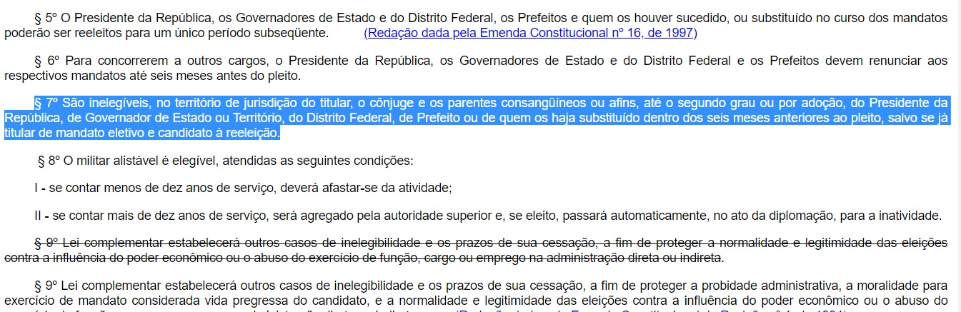 com o Art. 14, Parágrafo 7, da CF (Constituição Federal), cujo texto dispõe que