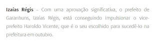 de Garanhuns, Izaías Régis, está conseguindo impulsionar o Vice-prefeito