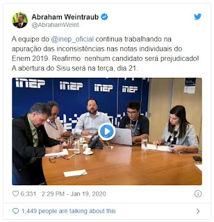 Educação, Abraham Weintraub, ter dito que o erro na correção do Enem havia sido