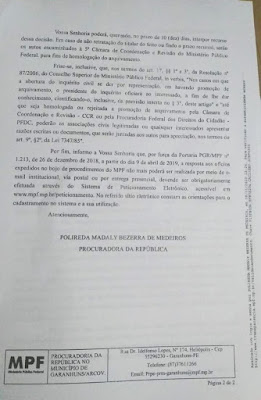 uma Nota no início da noite de ontem, dia 16, registrando ter recebido a
