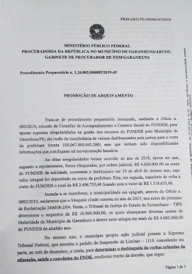 do Fundeb e o arquivamento por parte do MPF se deu pela falta de indícios de ilegalidades