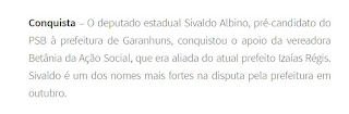 do apoio da vereadora Betânia da Ação Social, que está no PTB e vai migrar para