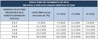 relacionado as datas de pagamento do IPVA, que pode ser pago em cota única, com