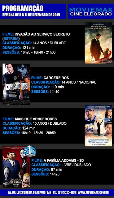 em cartaz no Eldorado os seguintes filmes: ‘A Família Addams’; ‘Mais que