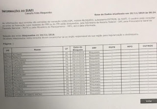 Participação dos Municípios (FPM) bloqueado. Aqui no Agreste Meridional, três