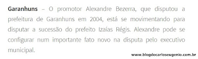 a sucessão do prefeito Izaías Régis. Alexandre pode se configurar num