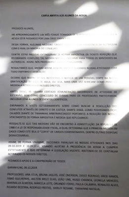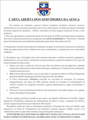CARTA ABERTA DOS SERVIDORES DA AESGA