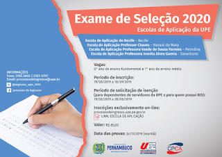 link: Escola de Aplicação. A taxa de participação custa R$ 85.
