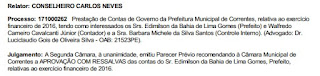 aprovou, com ressalvas, a prestação de contas da Prefeitura de Correntes. O julgamento