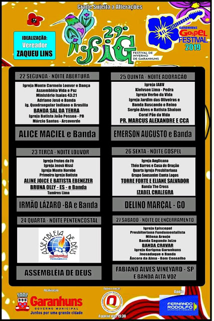 visitar Garanhuns, durante o Festival de Inverno, que será realizado de 18 a 27 de julho. O