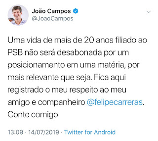 de Felipe Carreras no PSB, fez o seguinte comentário: “estão defendendo a