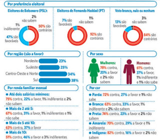 partidária o PSL (72% são a favor do projeto), partido do presidente; os que se