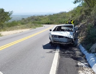 trafegam pela BR 424. Um veículo está abandonando as margens da Rodovia, na