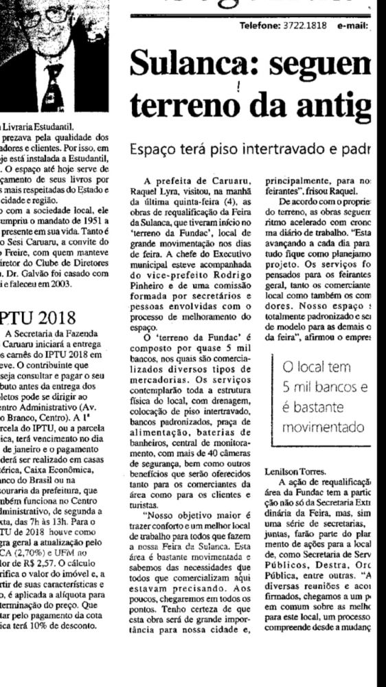 noticia a mudança de endereço da Feira da Sulanca em 2010, mas não informa que