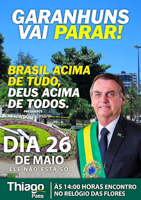 que um ato de apoio ao Governo Bolsonaro está marcado para o próximo domingo, dia 26, também em várias cidades do País. Aqui em Garanhuns, circula nas redes sociais um informativo sobre a manifestação com o título: