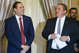 O líder do governo Paulo Câmara (PSB) segue acompanhado do relator da
