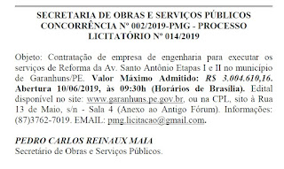 O Edital que abre o processo de contratação de uma Empresa para execução das obras foi