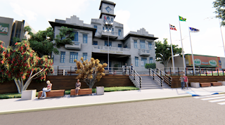 em frente ao Palácio Celso Galvão, sede do Poder Executivo Municipal; e a praça