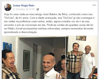 quarta-feira, dia 20, Régis esteve visitando o senhor José Sabino da Silva,