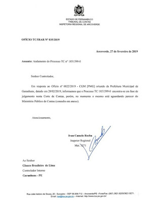 TCE-PE. O Governo Municipal de Garanhuns também revelou que “já foram juntados