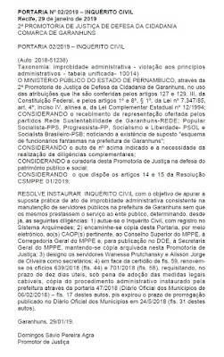 o Prefeito de Garanhuns, Izaías Régis (PTB), abrindo um Inquérito para fazer