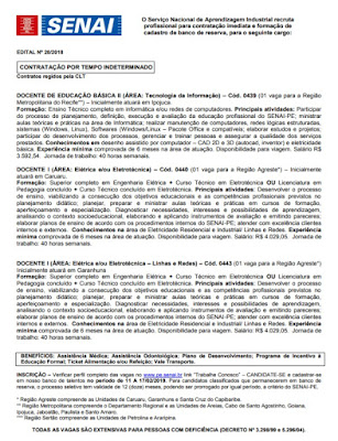 Industrial (SENAI) recruta profissionais para contratação imediata e formação