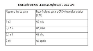 terminadas em 6, 7 e 8 poderão circular com o CRLV 2018 até julho e os com