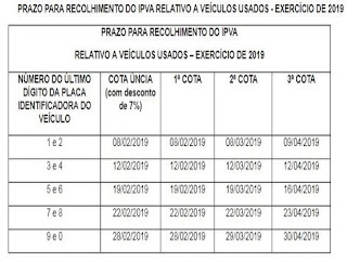 Automotores (IPVA), mesmo com parcelamento, ser até o mês de abril, os