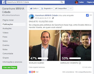 e Sivaldo Albino foi de 122 votos ou de 6%. A Enquete contou ainda com 336 comentários; 106