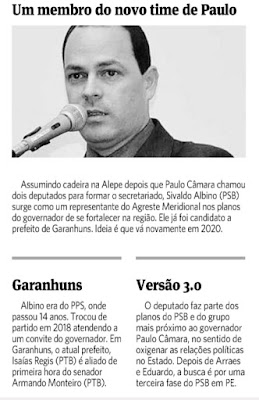 jornalista Igor Maciel, na coluna Pinga Fogo, do JC, “Sivaldo Albino (PSB)