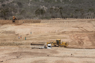 taludes. Após esta etapa, a célula, que terá cerca de um hectare de área, irá passar por um processo de drenagem, para