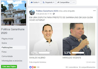 respectivamente. A enquete foi promovida pela página do facebook ‘PolíticaGaranhuns 2020’.