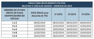 2019. Este ano, o IPVA teve uma redução de 3,18% em relação a 2018, no valor do