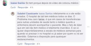 também no fecebook, sinalizam que ontem, dia 24, o Hospital contou Médico e