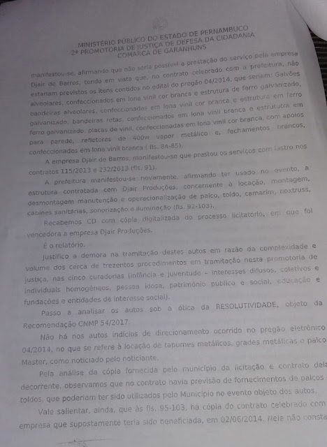Prefeitura de Garanhuns, o Promotor Domingos Sávio,