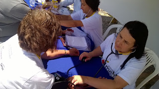 oferecidas consultas médicas, exames de tipagem sanguínea, teste de glicemia,